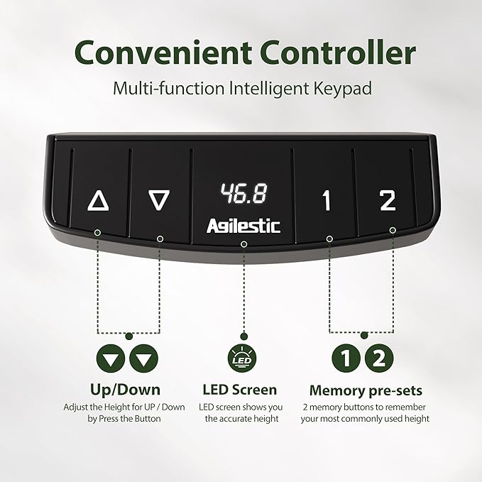 About This 【Electric Lifting System】Agilestic standing desk has an advanced motor that can support height adjustment between 28.3''-45.7'' with low...