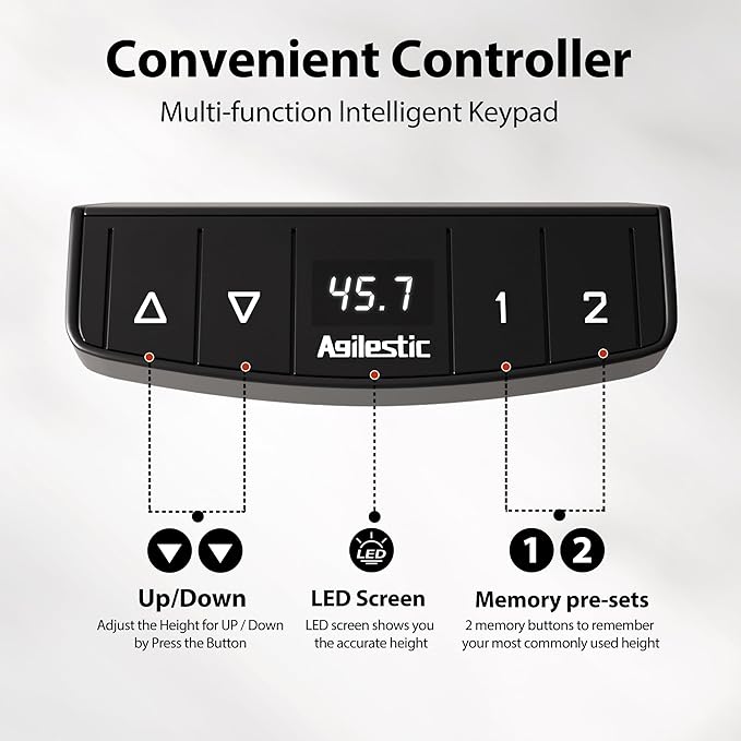 About This 【Intellegent Lifting System】Agilestic standing desks are equipped with an advanced motor and support height adjustment between 28.3''-45.7'' with...