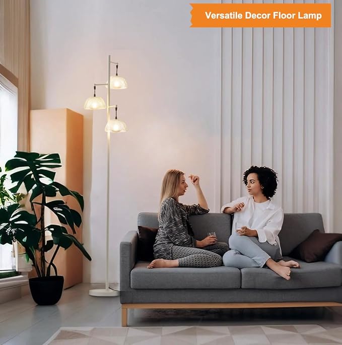 3 Lights White Floor Lamp for Living Room with 3 Metal Lampshade and LED Bulbs, Modern Tree Standing Lamp, Farmhouse Tall Lamp for Living Room, Bedroom, Office