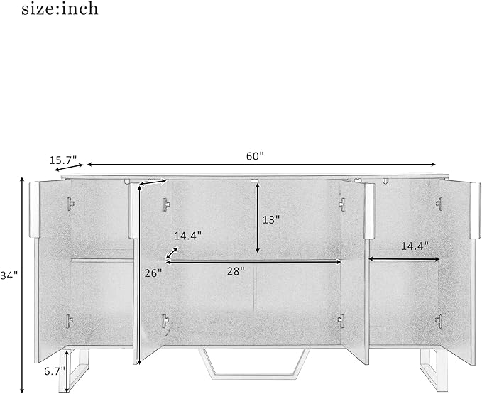 60" Modern Sideboard Buffet Cabinet with Four Doors,Metal Handles & Legs,Multifunctional MDF Storage Cupboard,W/Adjustable Shelves,for Hallway,Entryway Passage,Bedroom,Black