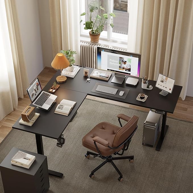 L Shaped Standing Desk Adjustable Height, Electric Corner Standing Desk, 63 x 55 inch Sit Stand Computer Table with Splice Board, Gaming Table, Black