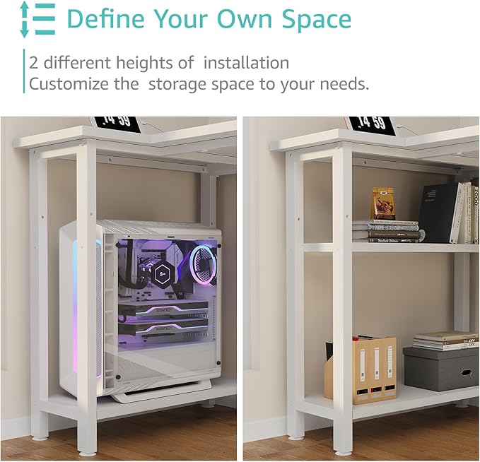 Lufeiya White L Shaped Computer Desk with Power Outlet Shelves, 47 Inch Corner Desk for Home Office Bedroom, L-Shaped Study Writing Working PC Desks, White
