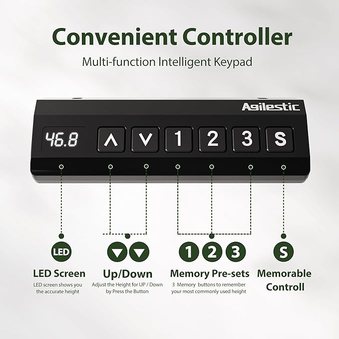 About This 【Electric Lifting System】Agilestic standing desk has an advanced motor that can support height adjustment between 27.8"-45.9" with low...