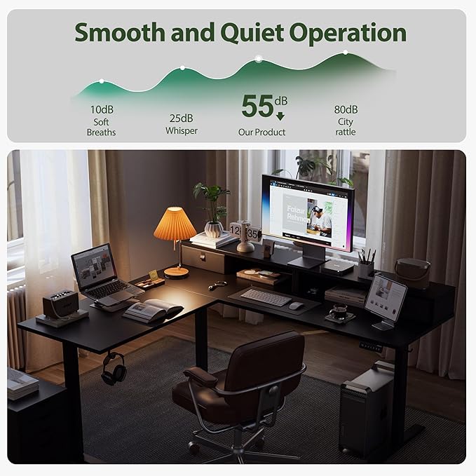 L shaped Electric Standing Desk with 2 Drawers, 63 Inch Ergonomic Adjustable Height Desk with Storage, Corner Desk Sit Stand up Computer Table for Work Office Home, Black