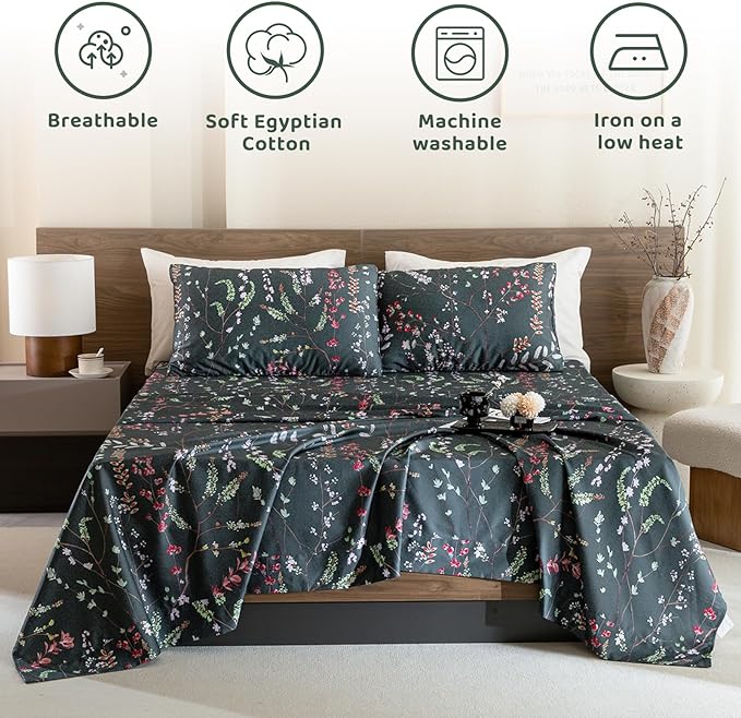 • Soft & Percale Egyptian Cotton Material - QSH floral printed sheets queen are made of high-quality egyptian cotton, very soft & breathable and durable,fade-resistant. Our 100% cotton sheets for queen size beds provide you with extra and unpredictable comfort and the best sleep ever.