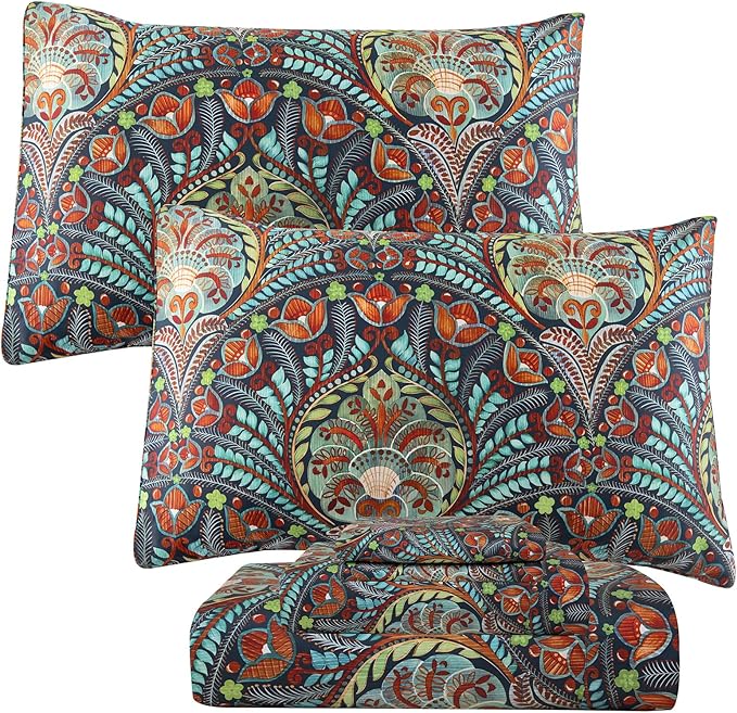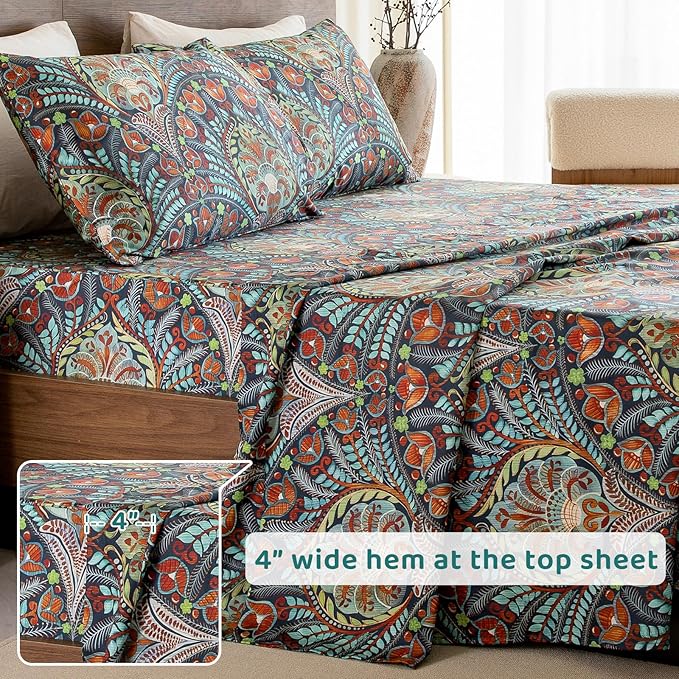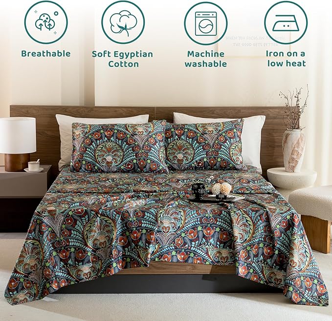 QSH Boho Bed Sheets Queen Size - Bohemian Western Bedding 100% Egyptian Cotton Pattern Sheets Queen Size Bed 4pcs Deep Pockets Bed Sheets