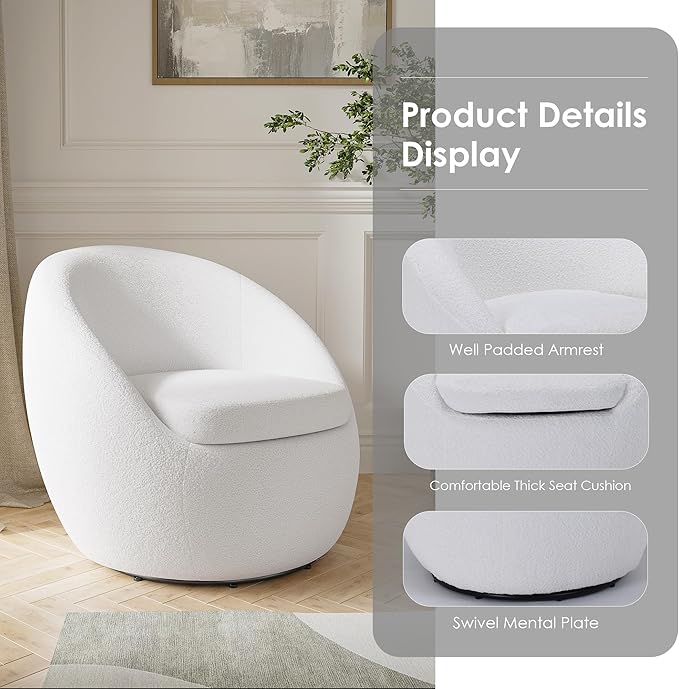 About This 【360° Swivel Design】:The accent sofa boasts a barrel silhouette with a swiveling construction, offering convenience and mobility while...