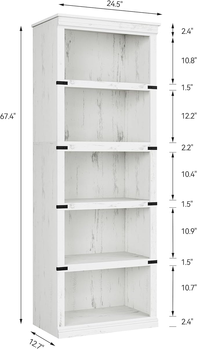 GAOMON 5 Tier Bookcase, Farmhouse Book Shelf with Storage, 67.4 Inch Tall Open Display Bookshelves, Wooden 5 Shelf Bookcase for Living Room, Bedroom-White