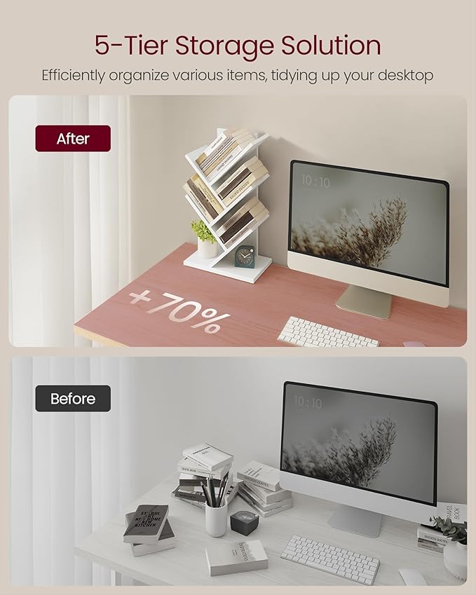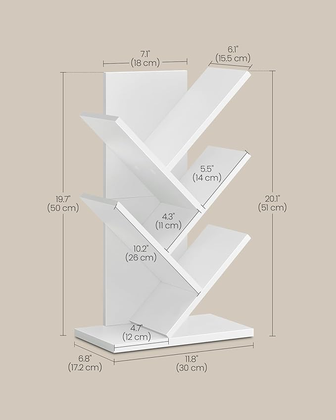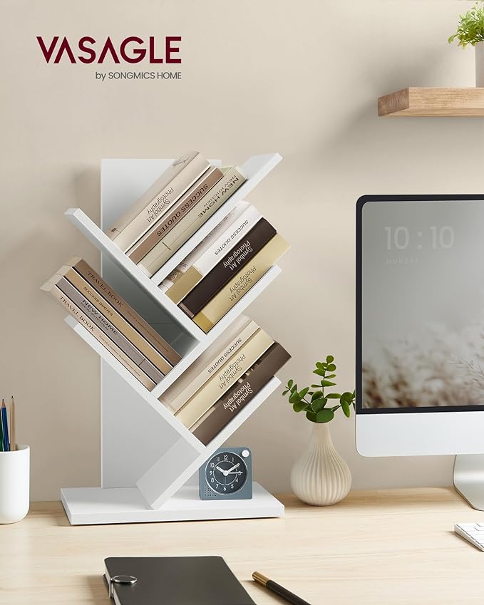 VASAGLE Tree Bookshelf, 5-Tier Bookcase, Small Bookshelf, Space-Saving Corner Shelf, Book Tree, Holds Books, CDs, Games, for Bedroom, Living Room, Home Office, Cloud White ULBC183T14