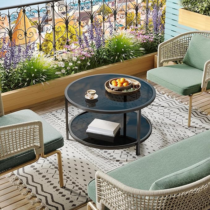 About This 2-Tier Glass Shelf Design:This round tempered glass coffee table has 2-tier open shelf,made of 5mm Explosion-proof clear tempered...