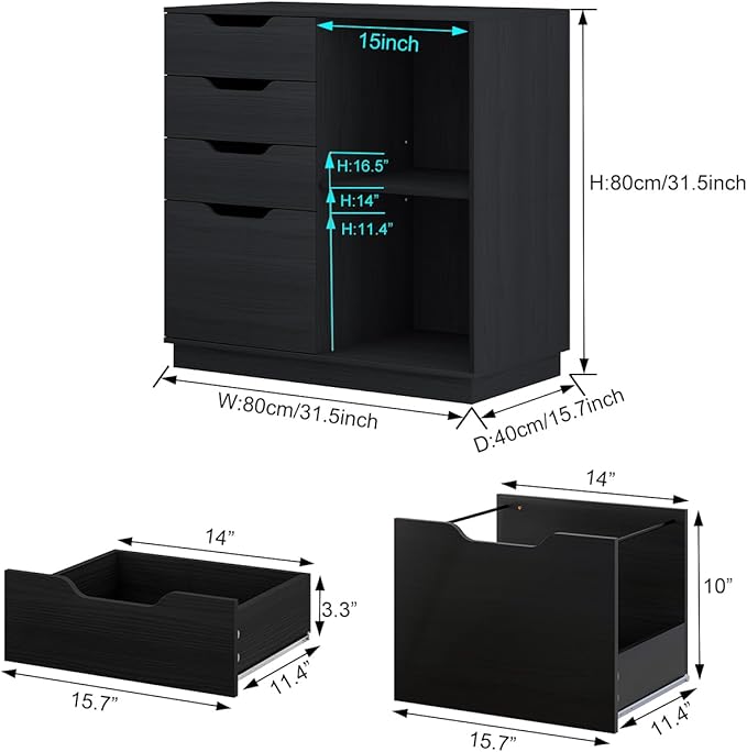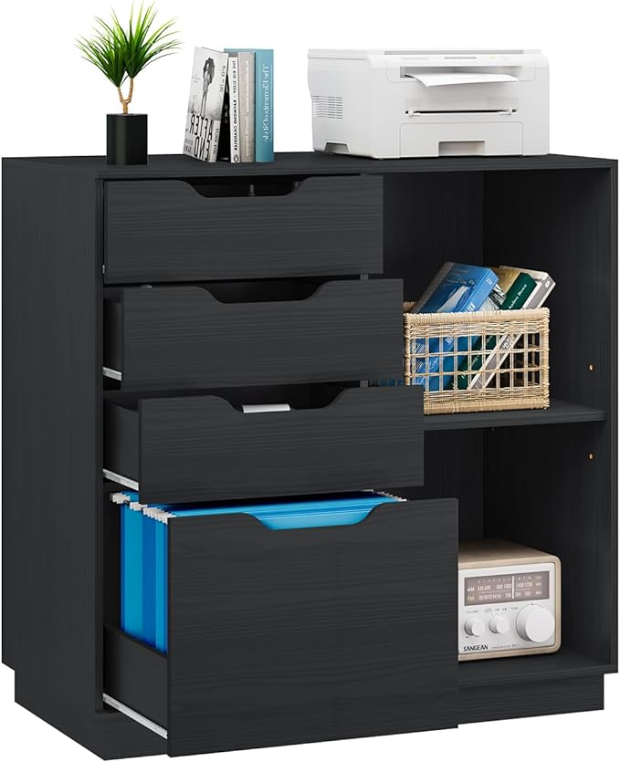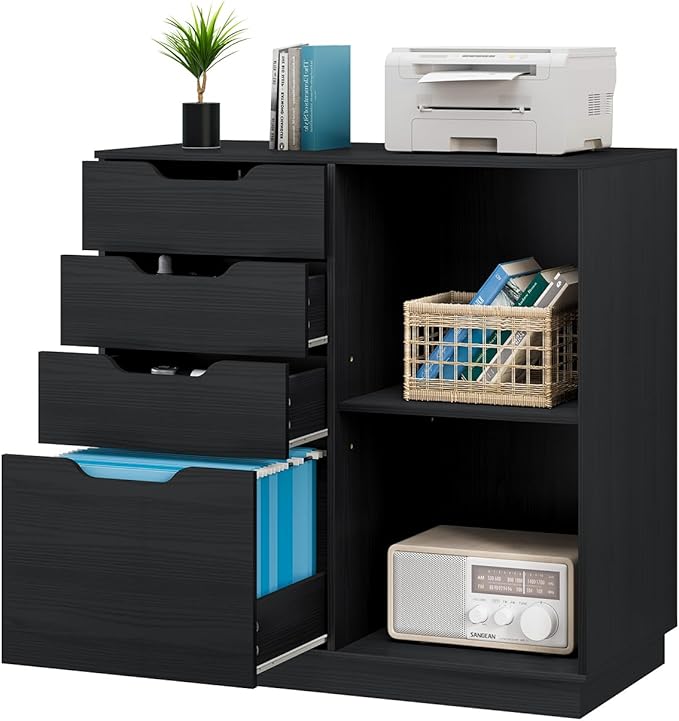 About This PAG-Mass 4 Drawers Lateral File Cabinets, Wood Filing Cabinet, Printer Stand with Open Storage Shelves for Home Office,...