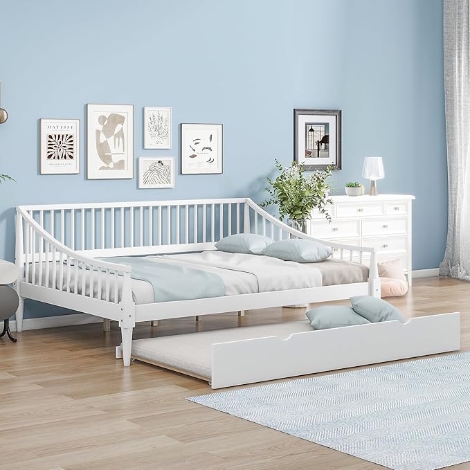 About This Pine Wood+mdf [Space-saving] This full size daybed with a twin hideaway trundle bed is easy to create the...