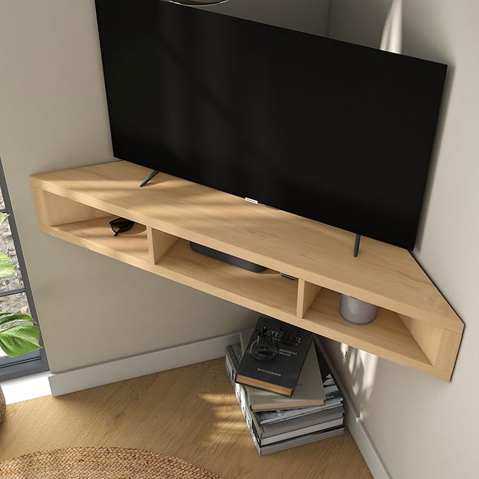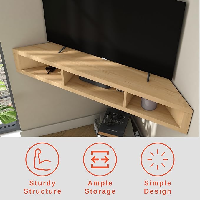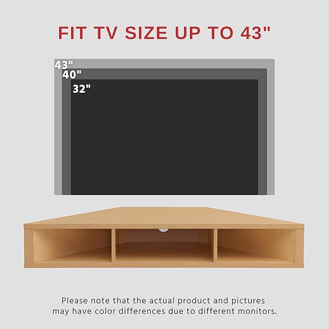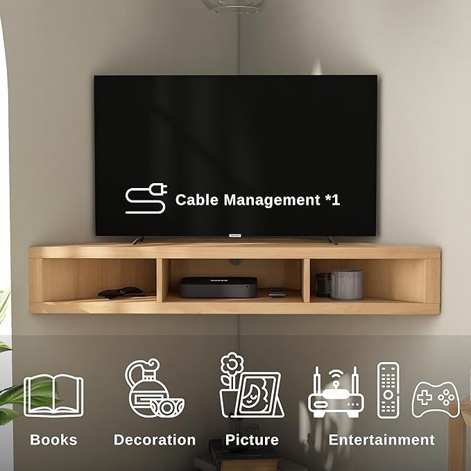 About This 【Versatile Use】 This 47 inch wide corner wall shelf is suitable for TVs up to 43 inch and...