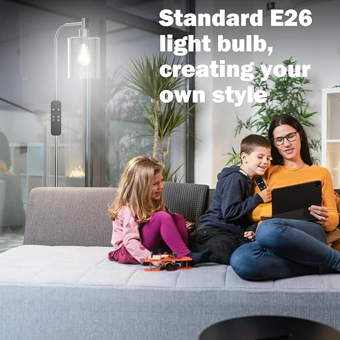 PAZZO LED Floor Lamp, Industrial Standing Lamp with Glass Lampshade, Ideal for Living Room, Bedroom, and Office,Silver(includes Remote Control)