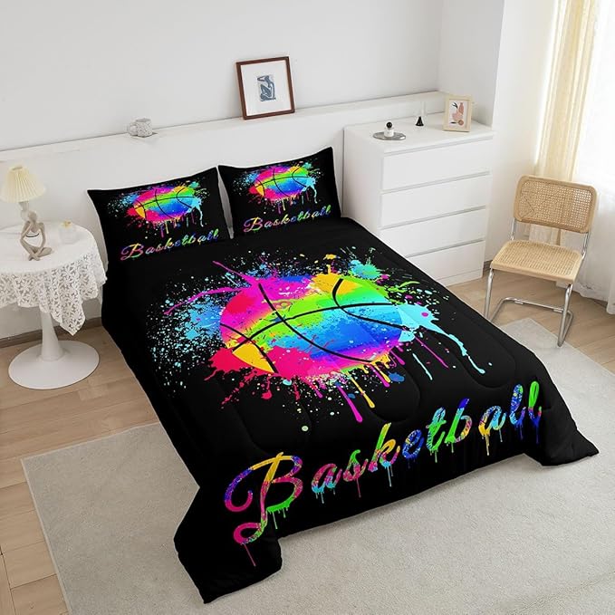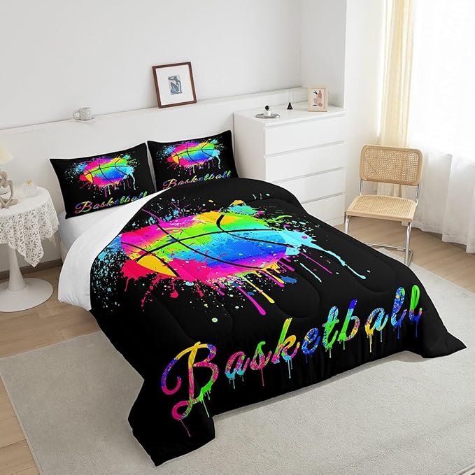 Feelyou Kids Basketball Comforter Set Twin Size Gaming Sports Bedding Set for Boys Girls Teens Bedroom Decor Ball Games Tie Dye Comforter Gift for Basketball Lover Duvet Set with 1 Pillow Case