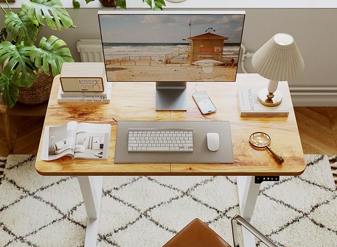 BANTI Small Electric Standing Desk, Stand up Height Adjustable Home Office Table, Sit Stand Desk with Splice Board, 44"x24", Light Rustic Brown Top