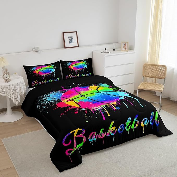 Feelyou Kids Basketball Comforter Set King Size Gaming Sports Bedding Set for Boys Girls Teens Bedroom Decor Ball Games Tie Dye Comforter Gift for Basketball Lover Duvet Set with 2 Pillow Case