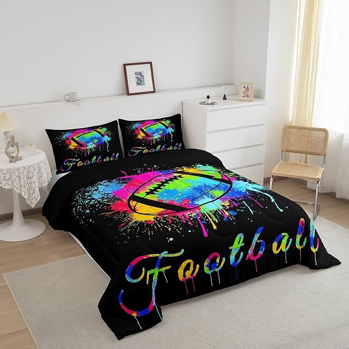 Feelyou Kids Football Comforter Set King Size Rugby Sports Game Bedding Set for Boys Girls Teens Bedroom Decor Tie Dye Comforter Women Men Soccer Player Duvet Set with 2 Pillow Case