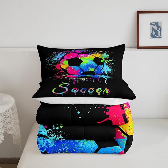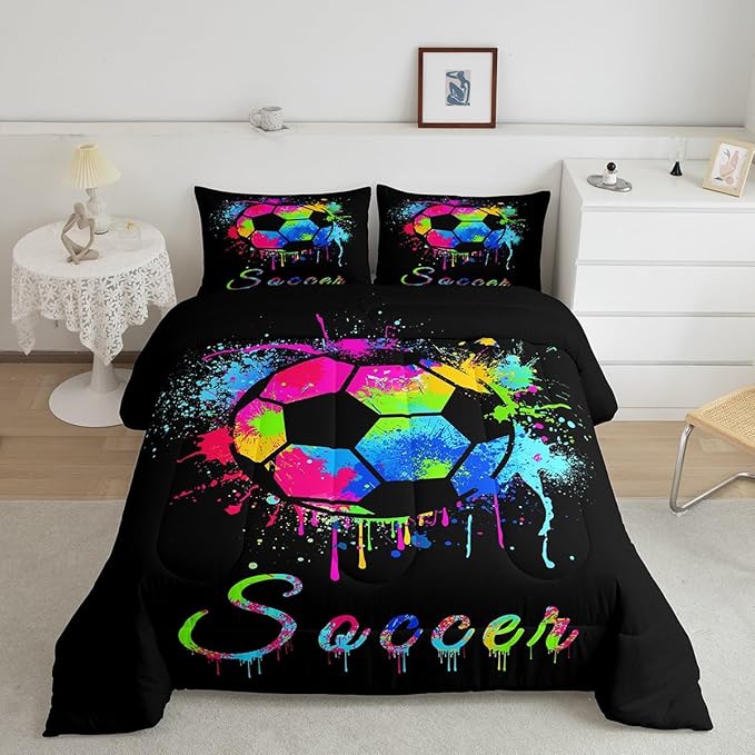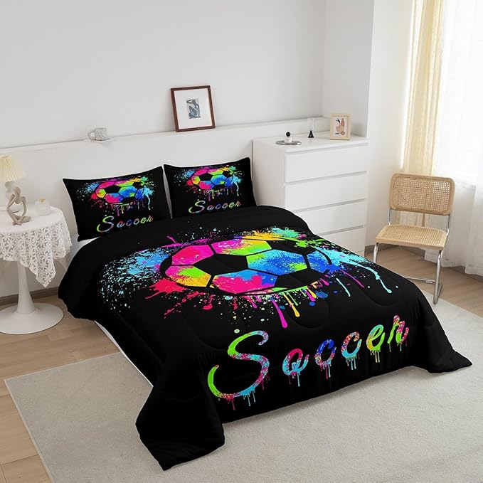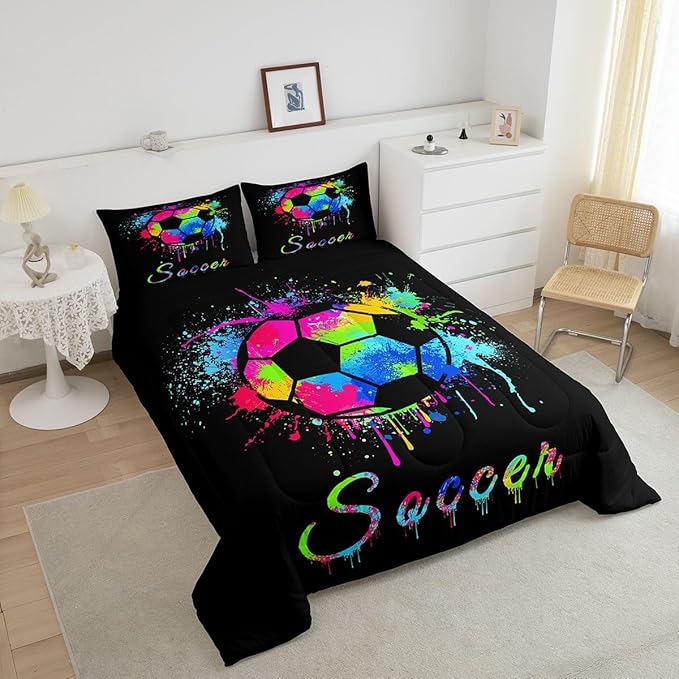 Feelyou Kids Soccer Ball Game Comforter Set Queen Size Football Bedding Set for Boys Girls Teens Bedroom Decor Rugby Sports Comforter American Football Player Duvet Set with 2 Pillow Case