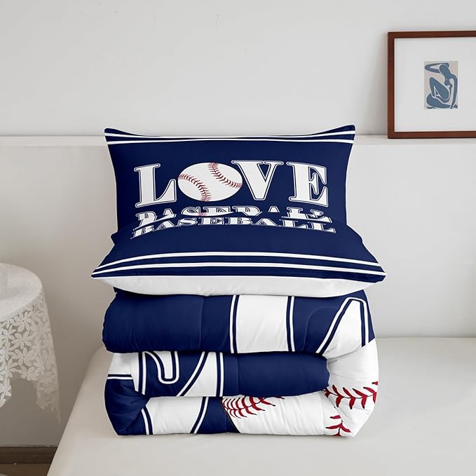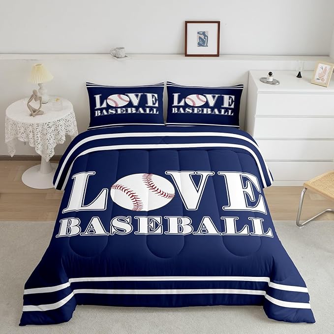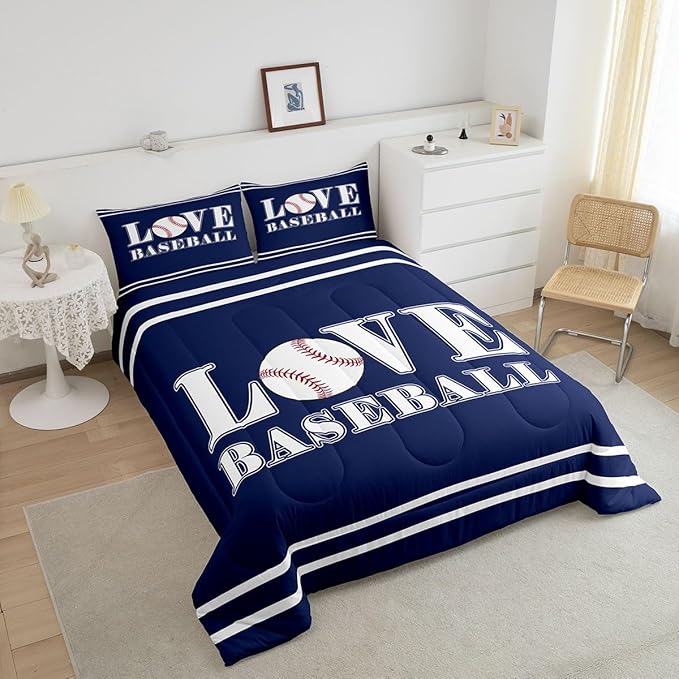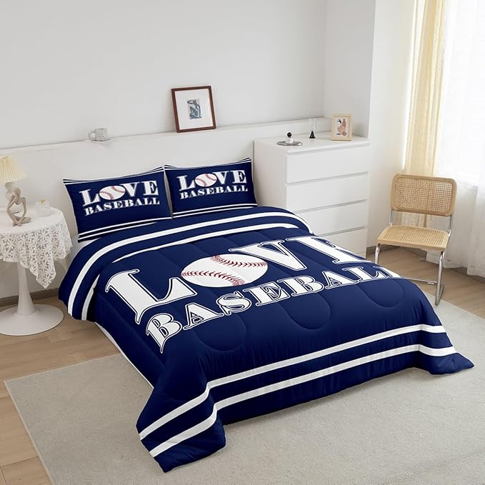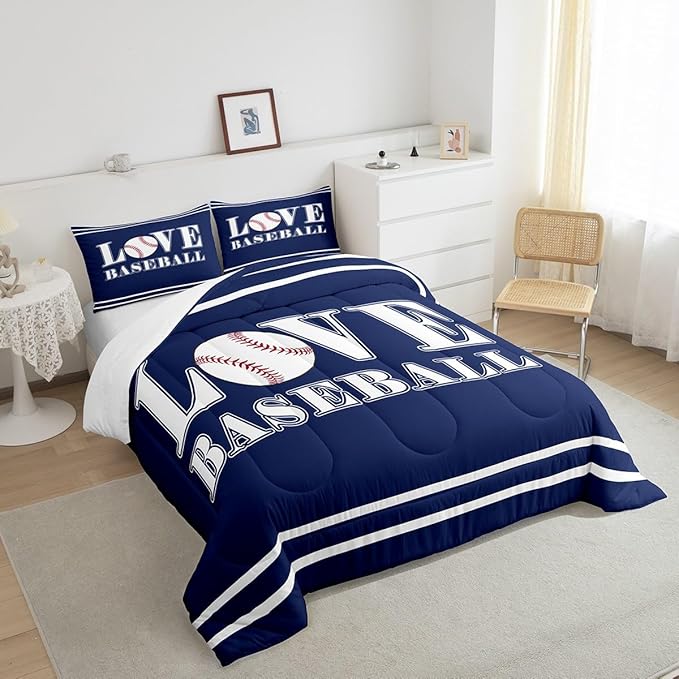 Kids Baseball Comforter Set Full Size Sports Game Bedding Set for Boys Girls Teens Bedroom Decor Baseball Gaming Comforter Gift for Baseball Lover Duvet Set with 2 Pillow Case