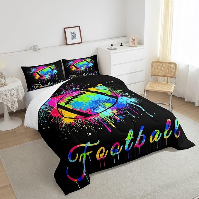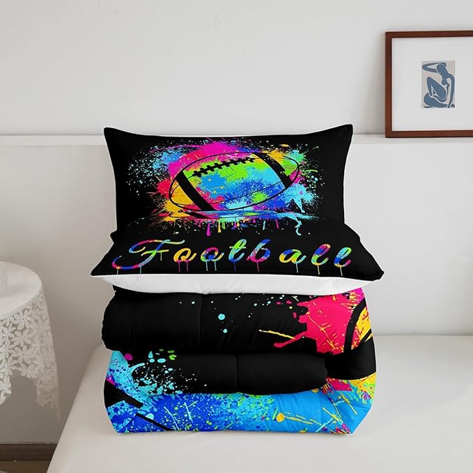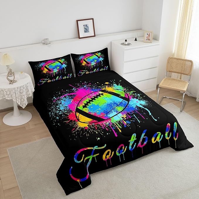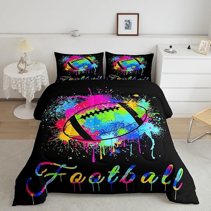 Kids Football Comforter Set Full Size Rugby Sports Game Bedding Set for Boys Girls Teens Bedroom Decor Tie Dye Comforter Women Men Soccer Player Duvet Set with 2 Pillow Case