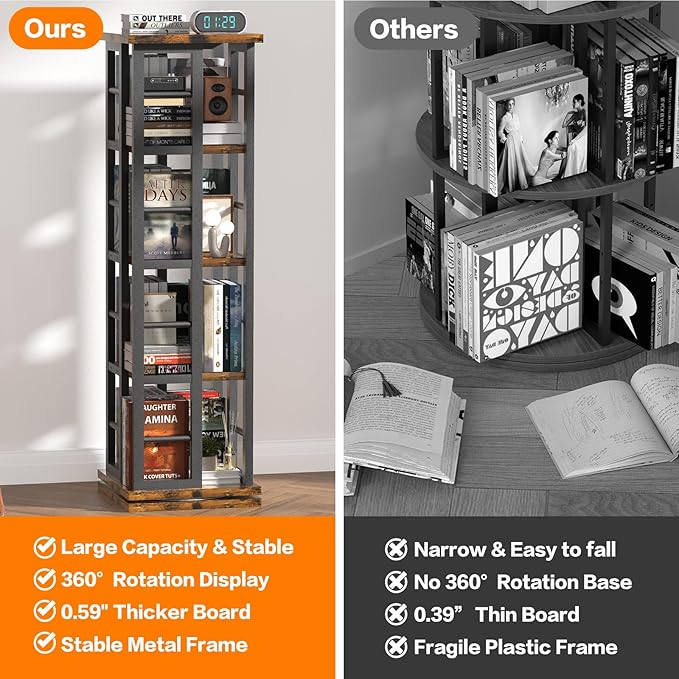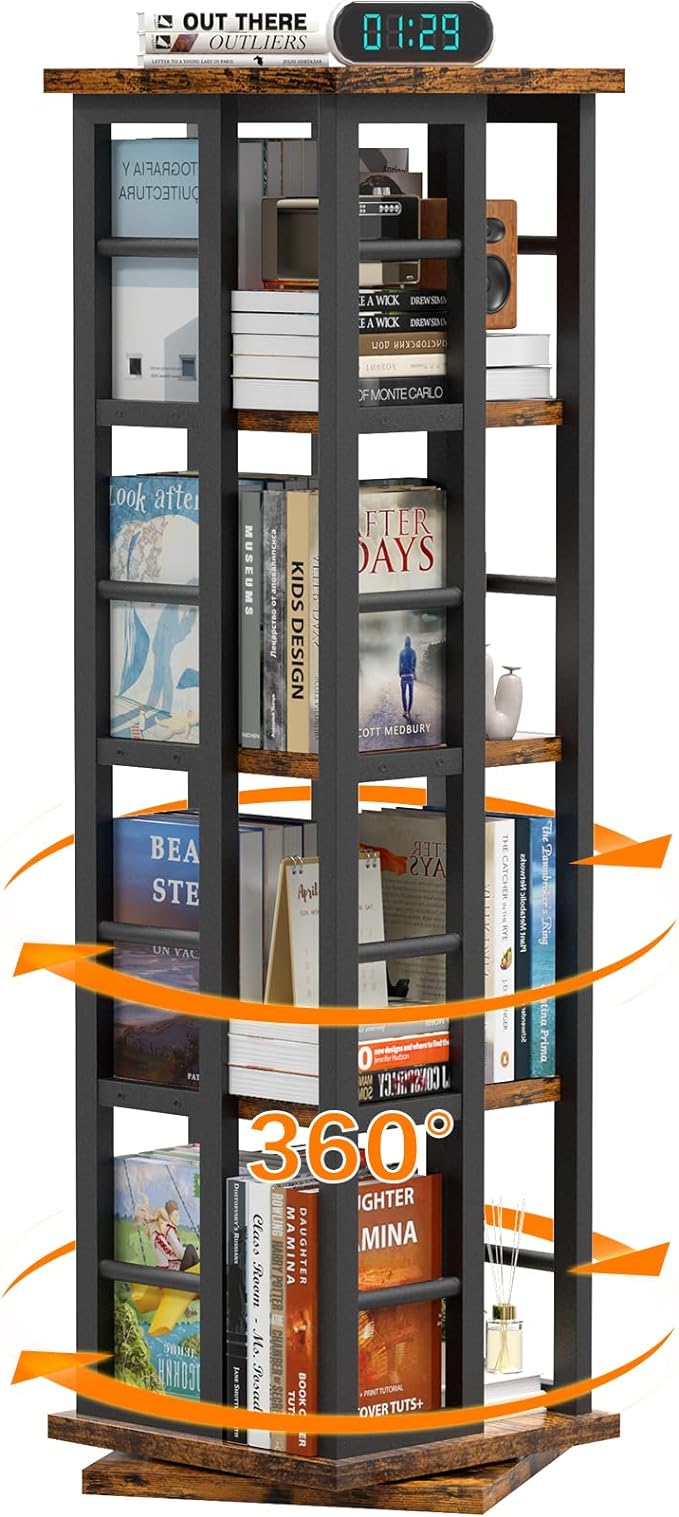 About This 【Adjustable 360°Rotating Book Shelf Tower】Our EasyCom bookshelf can easily rotate 360 degree with a rotating steel base. The...