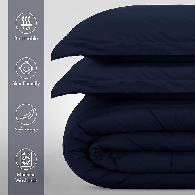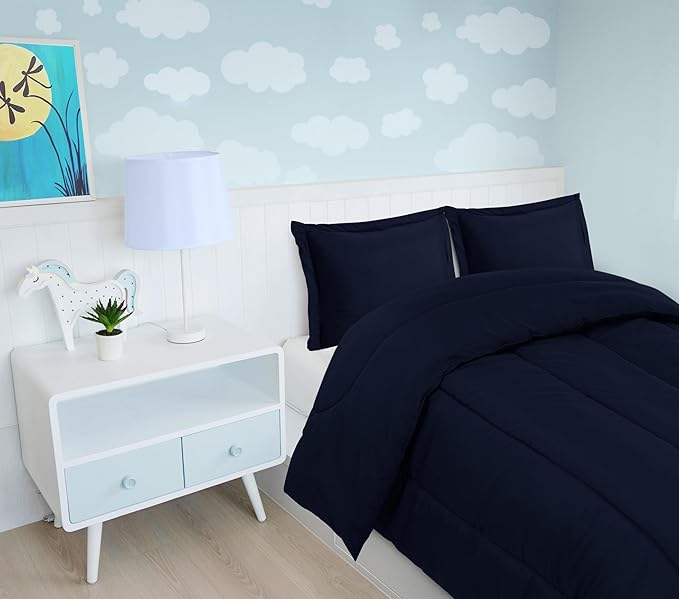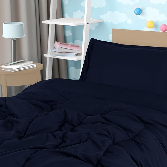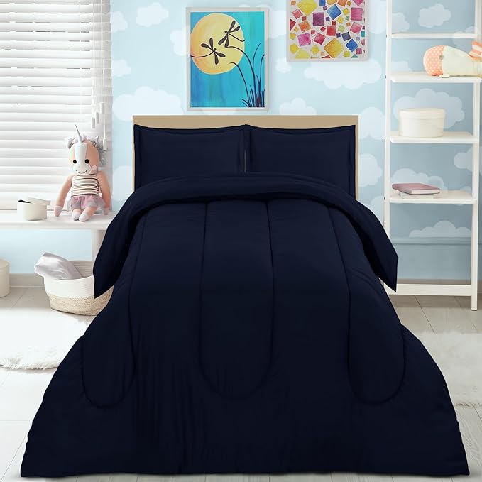Utopia Bedding All Season Navy Comforter Set with 2 Pillow Cases, 3 Piece Soft Brushed Microfiber Kids Bedding Set for Boys/Girls, Machine Washable (Twin)
