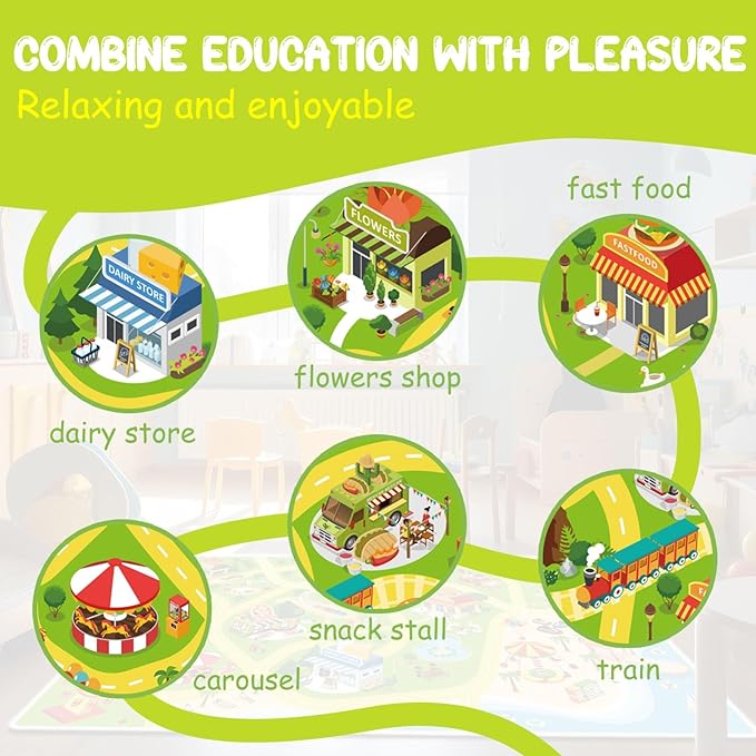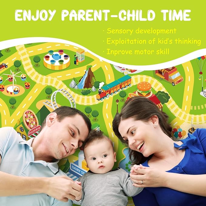 Kids Carpet Car Rug Play Mat for Playroom - 63"x 94" Non Slip Washable Kids Road Rug for Kids- Kids Educational Rug Ideal Gift for Toddler Classroom Boys Girls Bedroom Decor(Green)