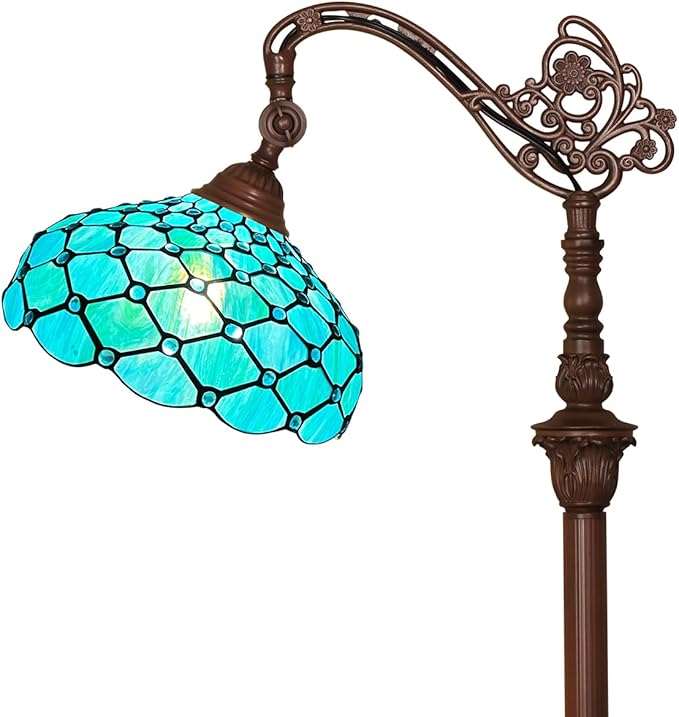 Capulina Tiffany Floor Lamp 62 Inches Tall Seagrass Blue Beads Style Stained Glass Soft Light Arched Gooseneck Adjustable Angle Reading Lamp for Living Room Bedroom Home Office