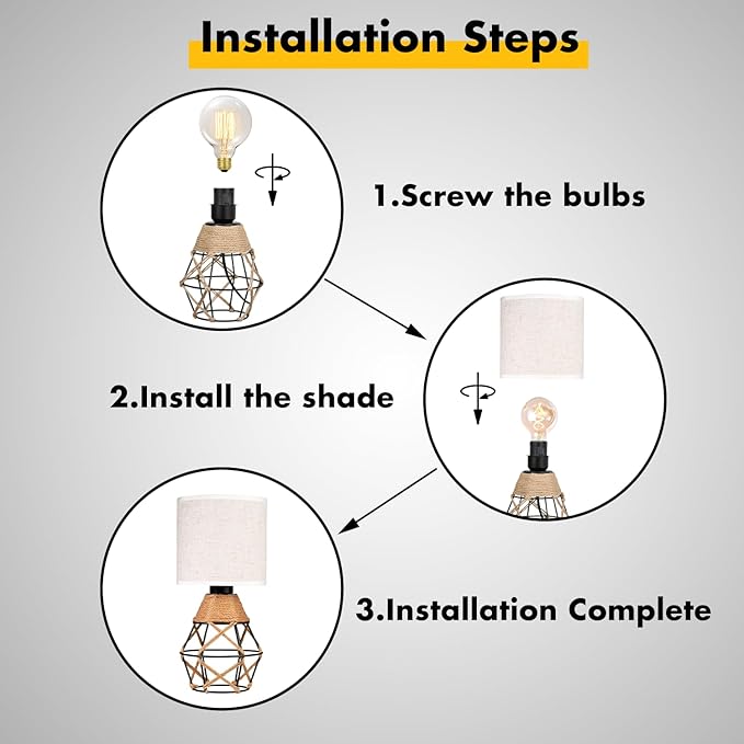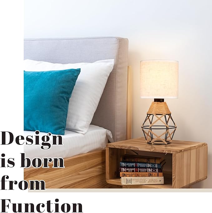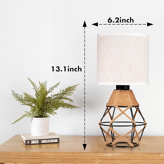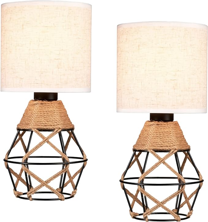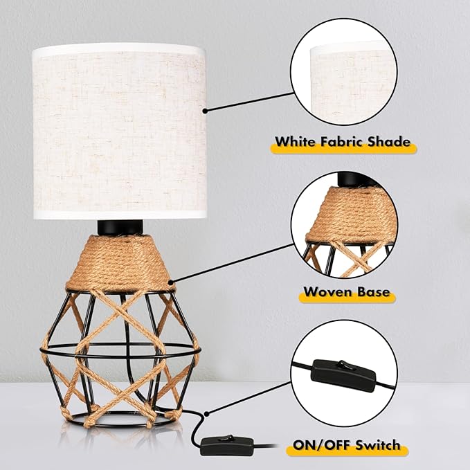 Hamilyeah Woven Table Lamps Set of 2, Farmhouse Lamps for Nightstand with On/Off Switch, Bedside Lamps with Fabric Shade, Modern Simple Lamps for Bedroom, Living Room,home office
