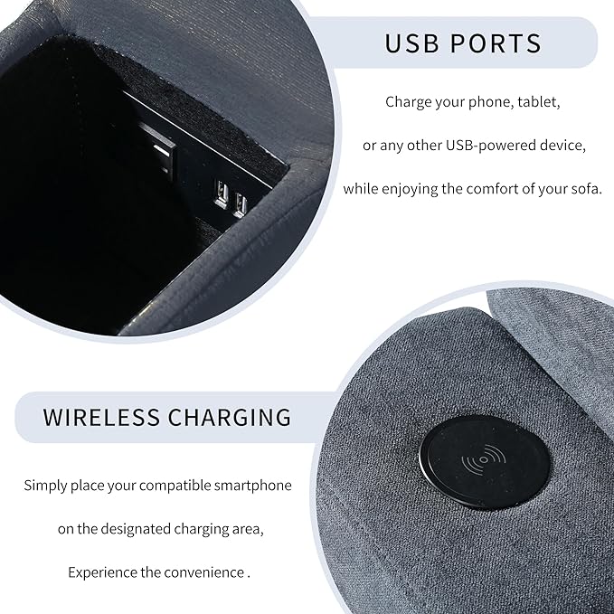 Free Combination Convertible Modular Sectional Sofa, 4 Seater Upholstered Sleeper Corner Couch with USB Ports & Wireless Charging & Speaker,Deep-Seat Sofabed for Living Room Office, Gray 105.9"