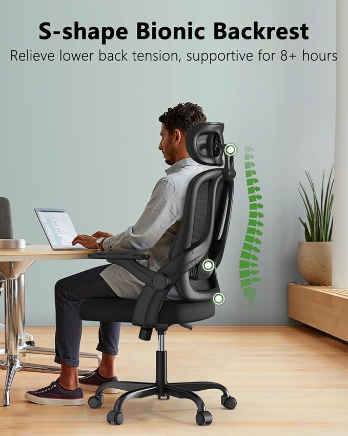 Home Office Chair, High Back Ergonomic Desk Chair with 3D Armrests, Lumbar Support, Mesh Computer Chair with Adjustable Headrest, for Home, Office, Work, Student