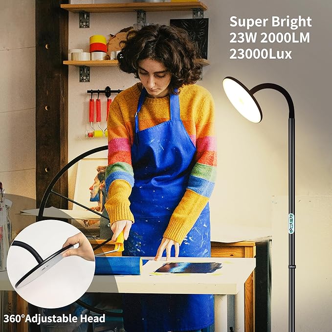 chiphy Floor Lamp, 60'' Bright Floor Lamp, 23W 2000LM Modern Floor Lamp, Dimmable 2300K-6500K Flexible Gooseneck with Remote Standing Lamp for Living Room Bedroom Office Reading Crafting Work Light
