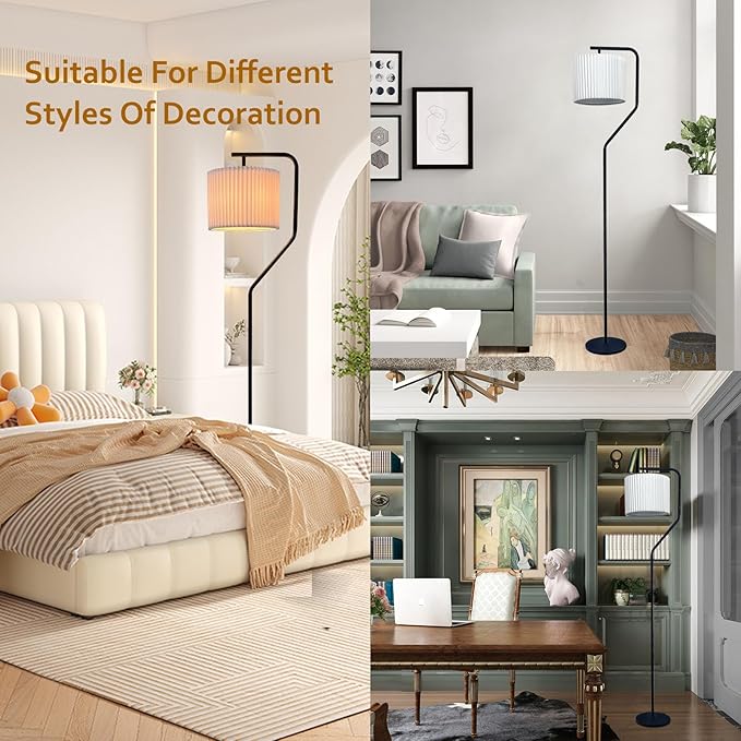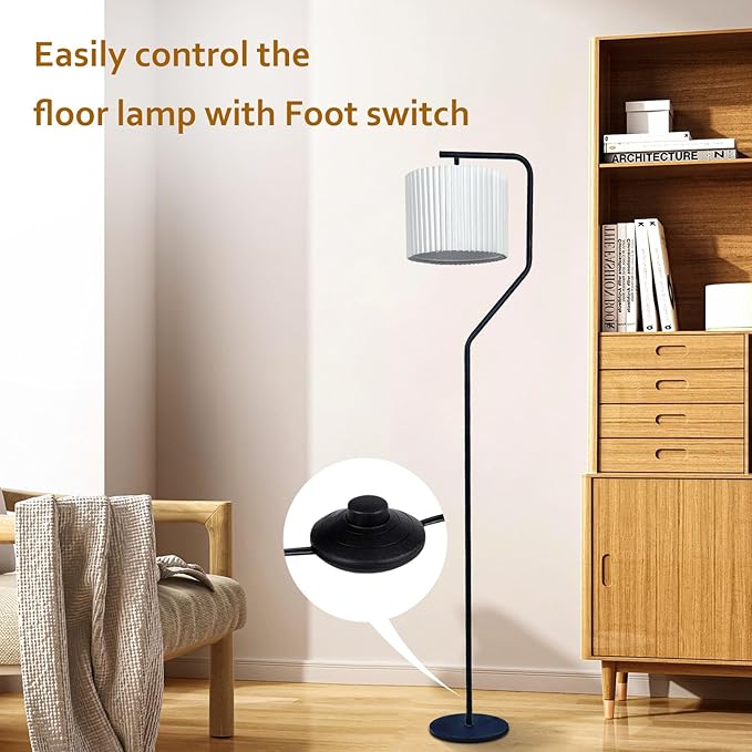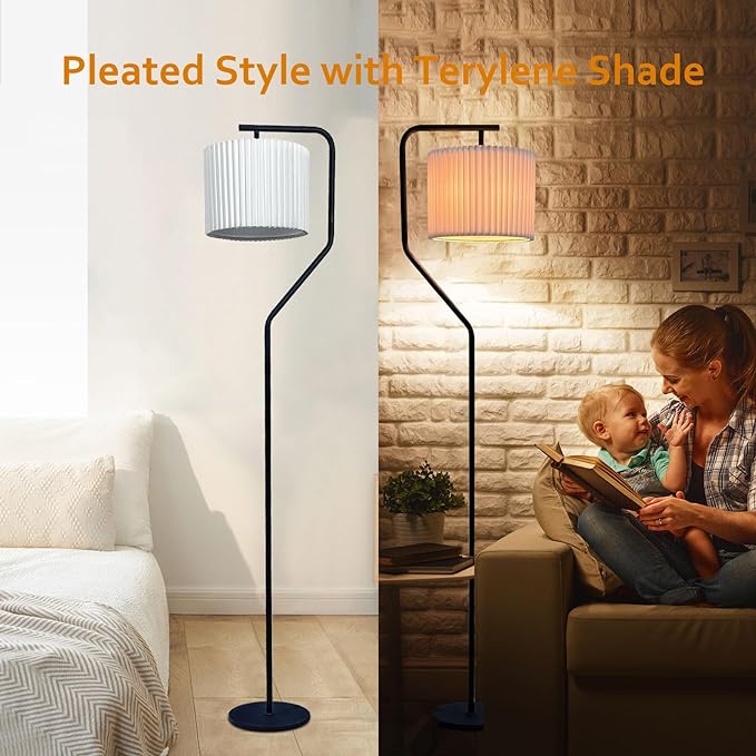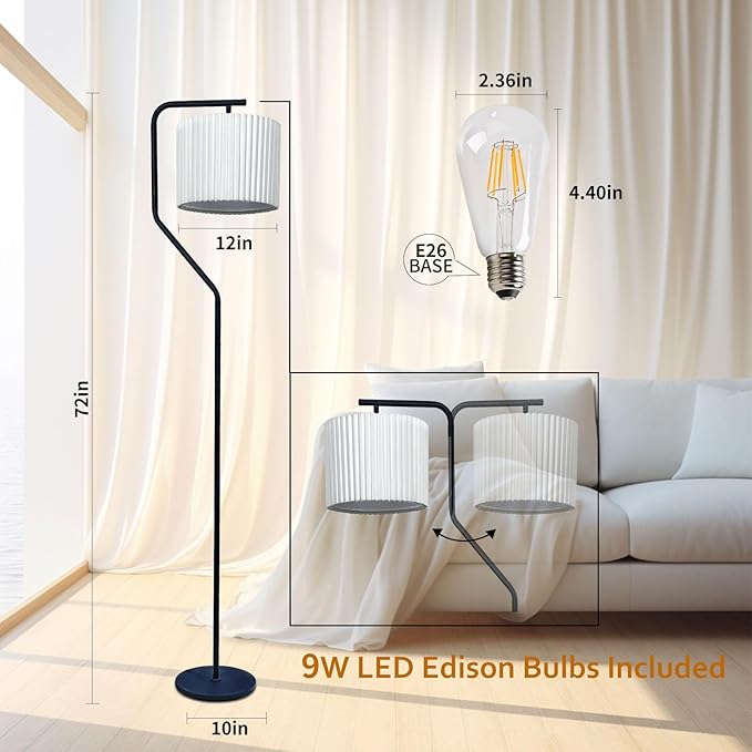 Floor Lamp,9W LED Edison Bulbs Included,Standing Lamp with 350 Adjustable Pleated Lampshade, 72" Tall Pleated Floor Lamp for Living Room Bedroom Office Classroom Dorm Room
