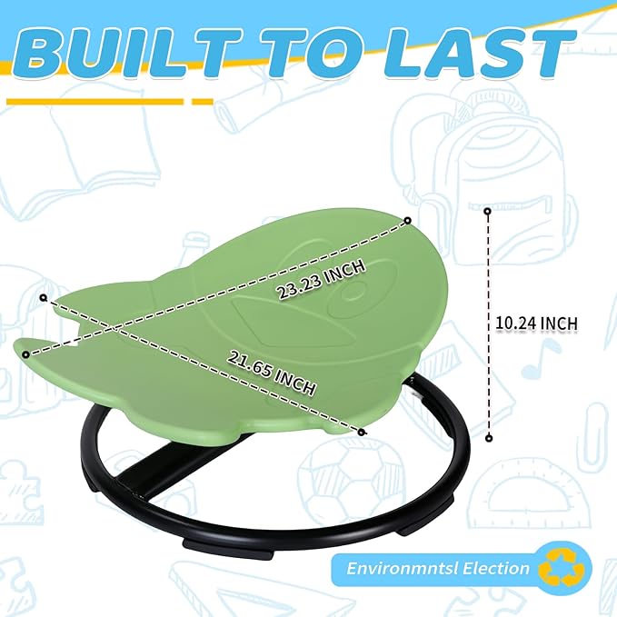 Sensory Spinning Chair for Kids, Autistic Childs Swivel Chair, Sit and Spin Toy, Training Body Coordination, Metal Base Non-Slip Indoor and Outdoor Activity Spins Toys (Penguin-Green)
