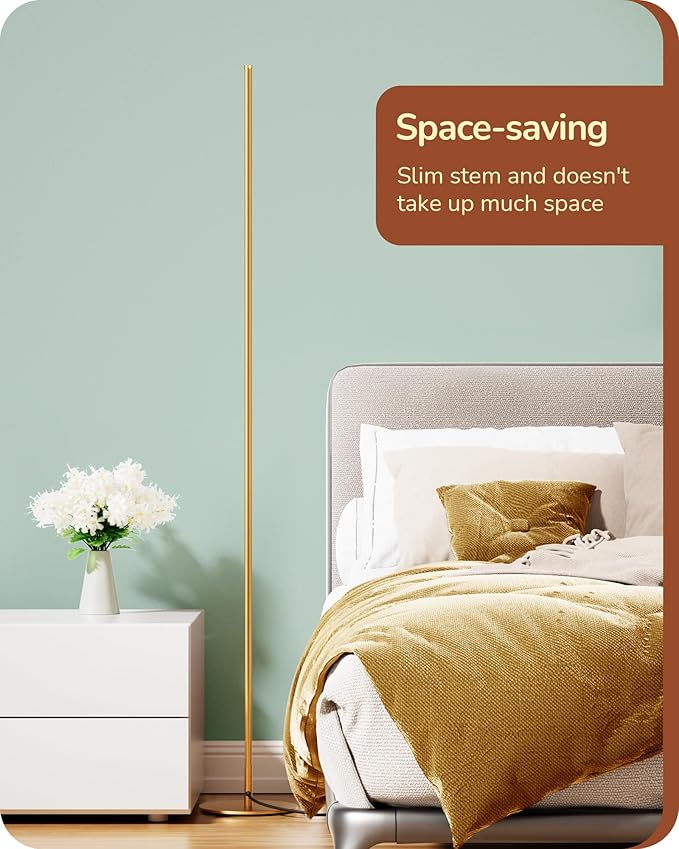 EDISHINE LED Corner Floor Lamp with Remote, 57.5" Minimalist Dimmable Light Pole, Standing Tall Moody Lamp for Living Room, Bedroom, Office, 3000K Warm White Light (Gold)