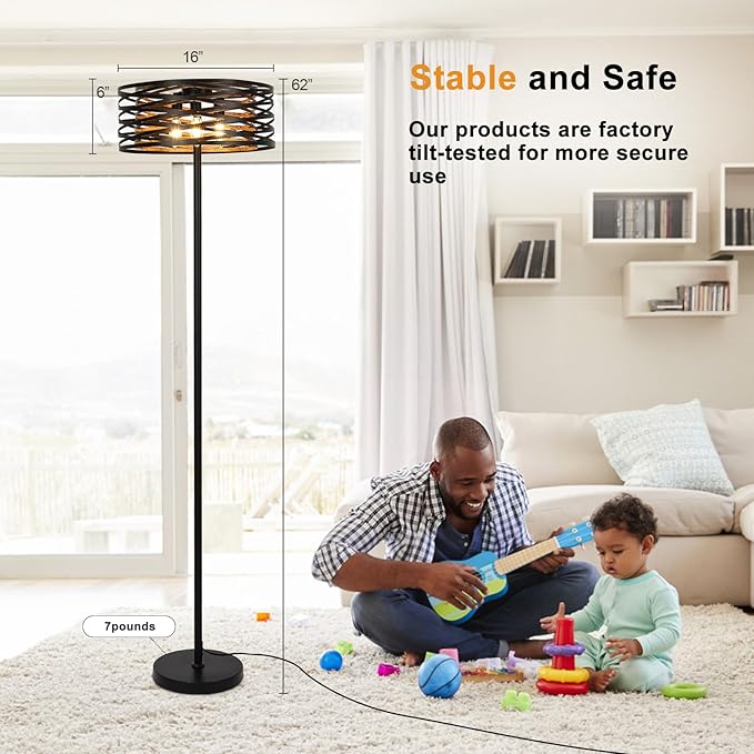Industrial Floor Lamp for Living Room, Farmhouse Floor Lamps for Living Room Bright Lighting, Vintage Rustic Floor Lamp with Double Shades, Tall Standing Lamp for Bedroom, Office(Black)