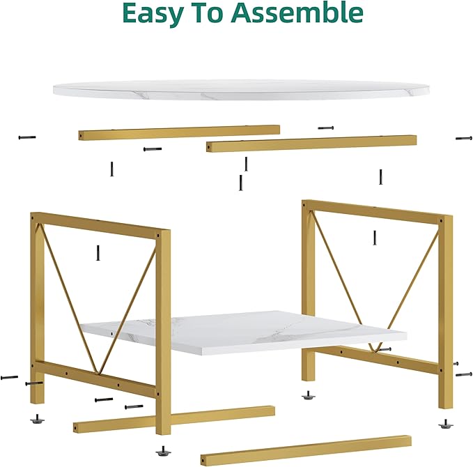 About This Sturdy Structure: This round coffee table features marble top and a sturdy gold steel frame providing a stylish...