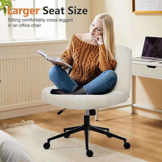 Sweetcrispy Criss Cross Office Chair with Wheels, Wide Armless Home Office Desk Chair with Dual-Purpose Base, Swivel Adjustable Fabric Task Vanity Computer Chair, Beige