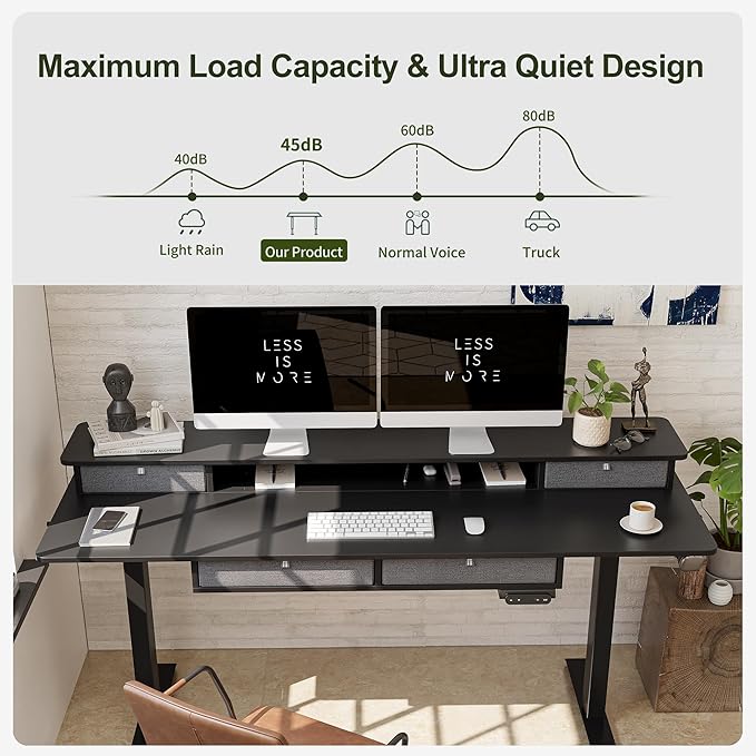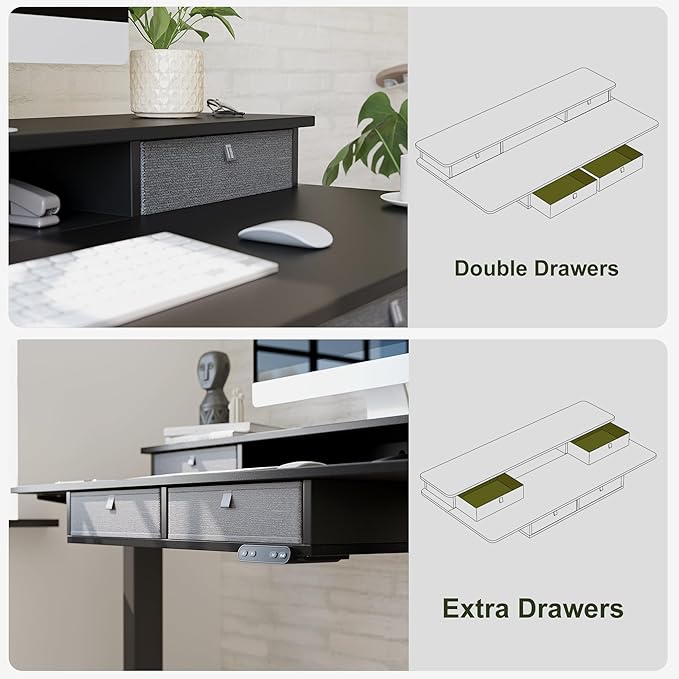 BANTI Height Adjustable Electric Standing Desk with 4 Drawers, 48 x 24 Inch Table with Storage Shelf, Sit Stand Desk, Black Top