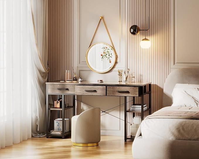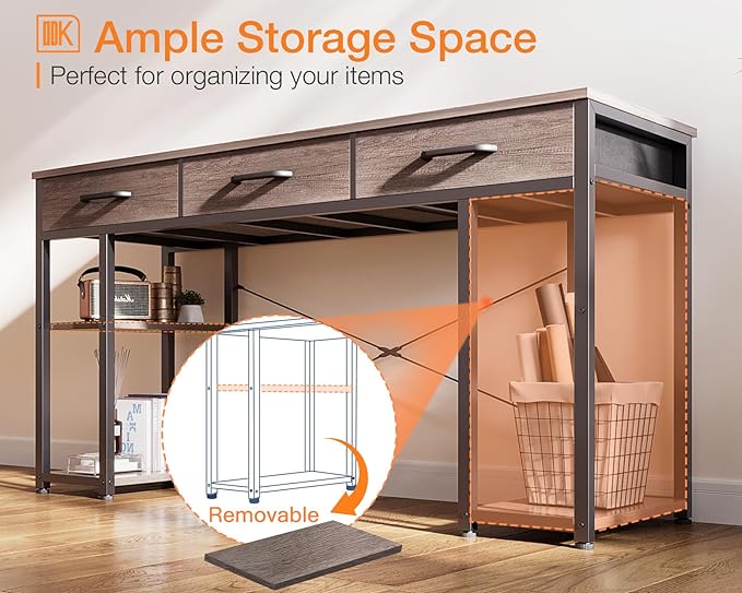 About This 👉【Large Storage Capacity Desk with Drawers】This desk table is designed with 3 easy to assemble fabric drawers that...