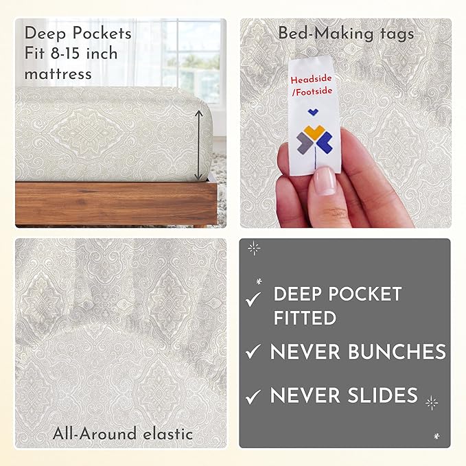 California Design Den Twin Sheet Set Paisley, 400 Thread Count, 100% Cotton Sateen 3 Pc Twin Size Sheets Set, Deep Pocket Sheets & Pillowcase Set - Paisley - Beige