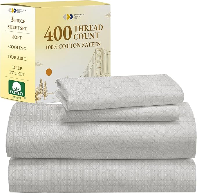California Design Den Extra Long Twin Sheets, 400 Thread Count, 100% Cotton Sateen 3 Pc Deep Pocket Twin XL Sheets & Pillowcase Set (Taupish-Sage Crosshatch)