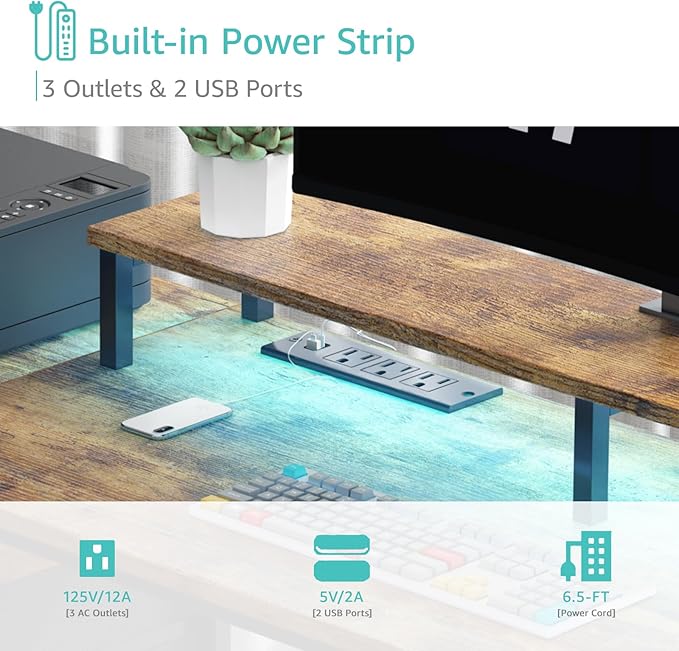 About This Safety Multifunctional Power Strip: The computer desk includes a built-in power strip with 3 power outlets & 2...