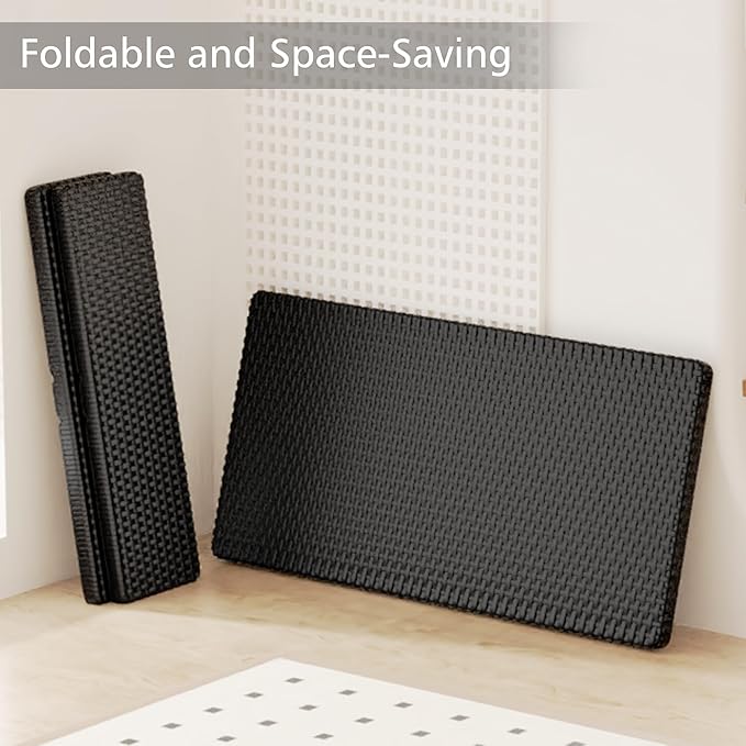VECELO Dining Table Set for 4, Faux Rattan Card Folding Dinette for Small Space with 2 Benches, Kitchen/Breakfast Nook/Living Room, No Assembly, 3 Piece, Black