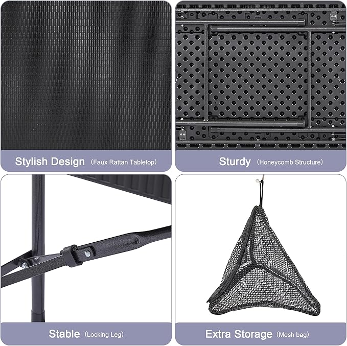 About This Hdpe [Multifunctional Dining Table] -- This dining table set for 4 is made of woven faux rattan and...