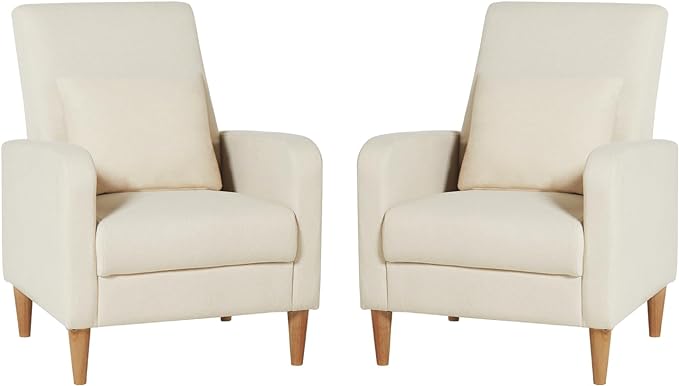 COLAMY Modern Accent Living Room Chairs Set of 2, Upholstered Fabric Armchair Reading Side Chair, Single Sofa with Back Pillow and Wood Legs, Beige