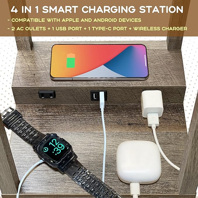 About This 【Versatile Fusion of Style and Utility】Discover the perfect blend of a tall floor lamp and shelves, providing both...
