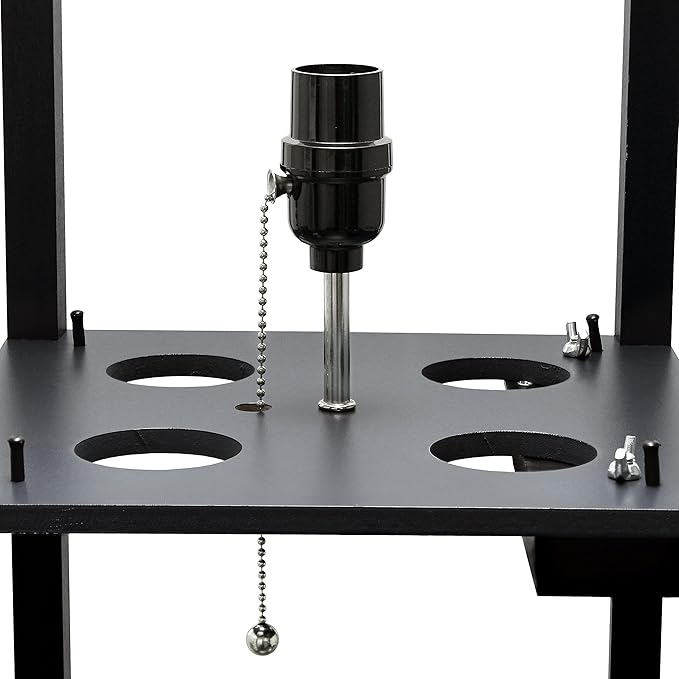 Simple Designs LF1037-BLK-LB Three Shelf Etagere Organizer Storage Floor Lamp with 2 Dual USB Ports and Charging Outlet, Black, with Feit LED Bulb Included