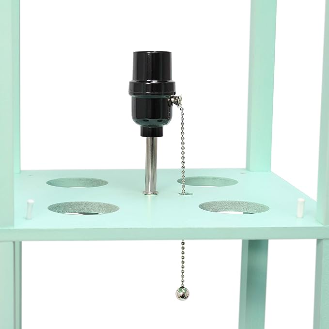 Simple Designs LF1014-AQU-LB Three Shelf Etagere Organizer Storage Floor Lamp with White Linen Shade for Living Room, Bedroom, Office, Hallway, Aqua, with Feit LED Bulb Included